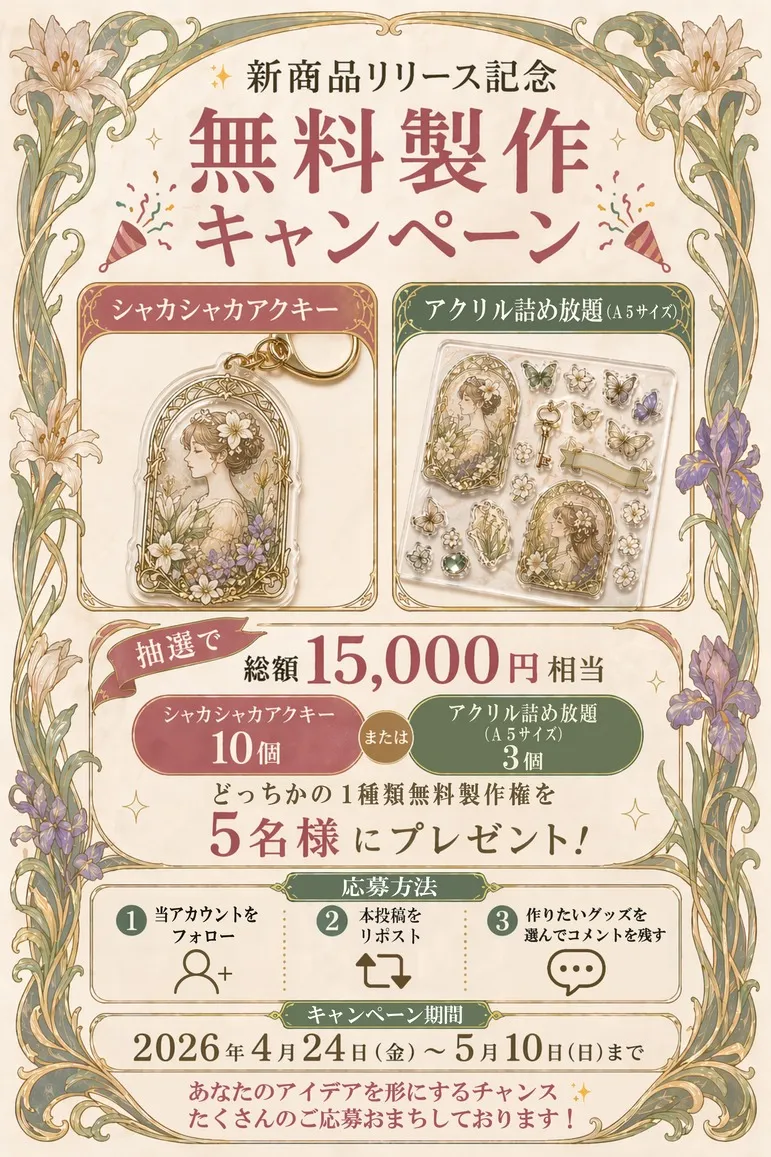 ・当選景品はアクリルグッズ制作権(制作クーポン)です。