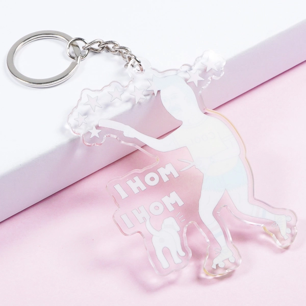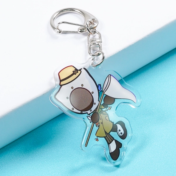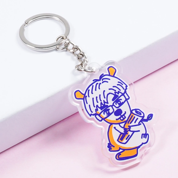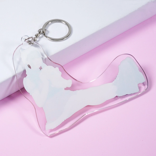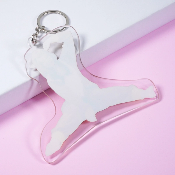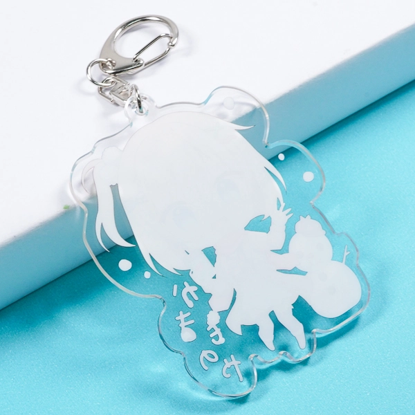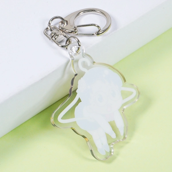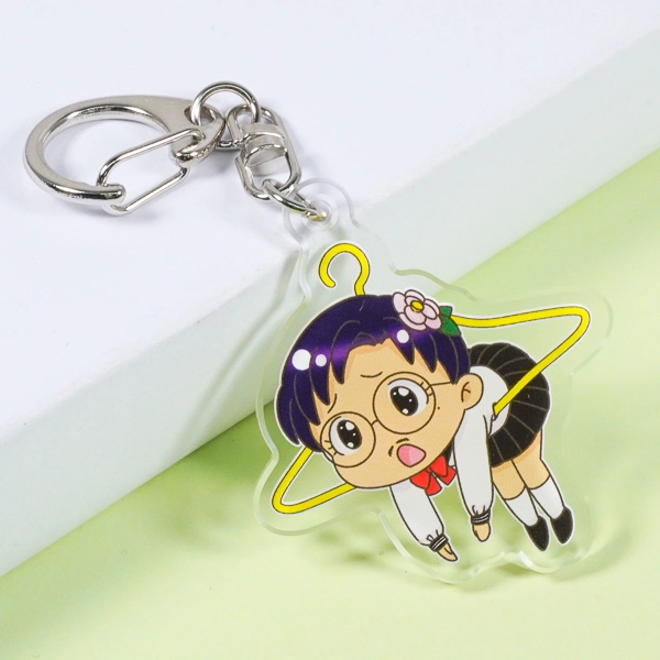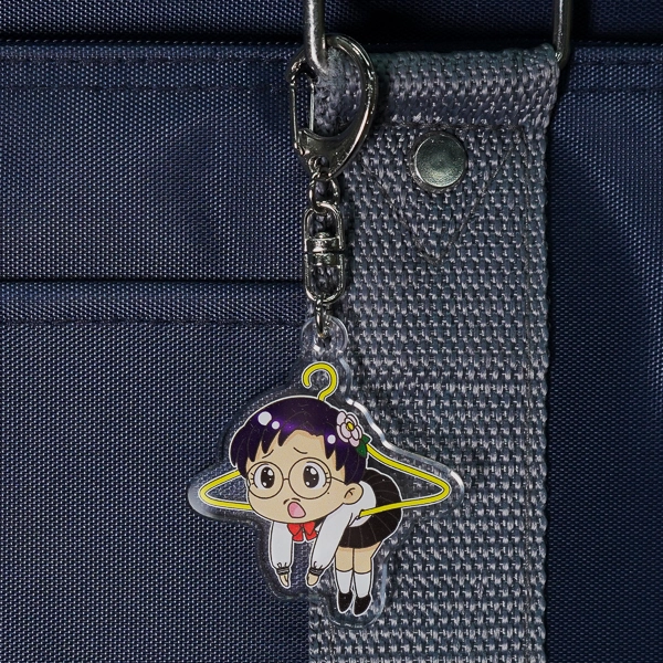 | 一言コメント | 制服姿の女の子が黄色いハンガーに引っ掛けられてしまったような、ユーモアあふれる「ぶら下がり風」デザインのアクリルキーホルダーです。上部の金具を使ってカバンなどに吊るすことで、実際にキャラクターがハンガーでぶら下がっているように見える、遊び心満載のイラスト構図になっています。ハンガーのフック部分の隙間をあえて透明に抜くなど、アクリル素材ならではの特性を活かしたアイデアが光るユニークなグッズです。 |