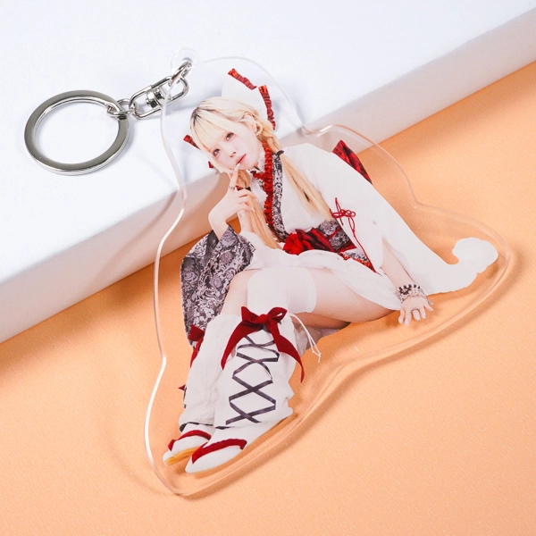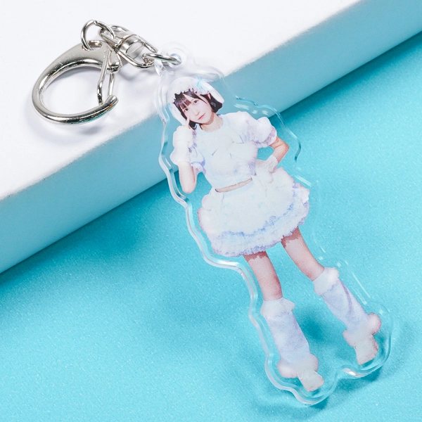 | 一言コメント | 人物の全身写真をそのまま切り抜いて配置した、実写デザインのアクリルキーホルダーです。フリルたっぷりの衣装の質感や柔らかな表情など、写真素材ならではのリアルな魅力がそのままダイレクトに伝わるグッズに仕上がっています。 |