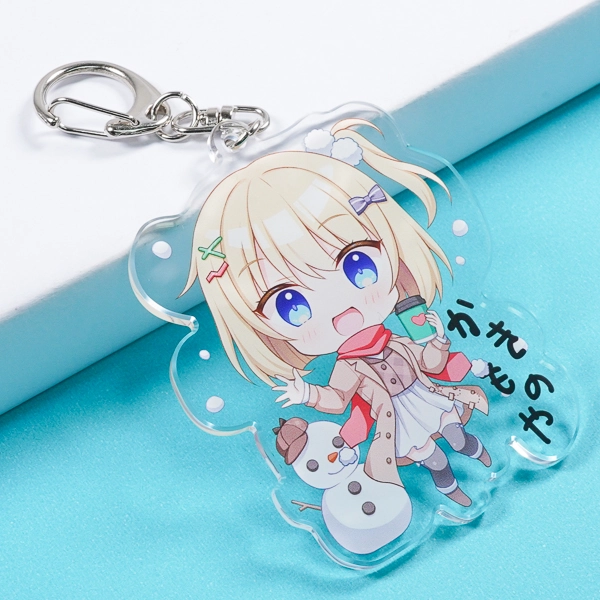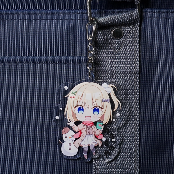| 一言コメント | コートやマフラーを身につけた冬の装いの女の子と、可愛らしい雪だるまを組み合わせた、季節感あふれるちびキャラデザインです。アクリルの透明な余白を活かして周囲に配置された雪のモチーフや手書き風のテキストが、ポップで楽しい雰囲気を引き立てています。 |