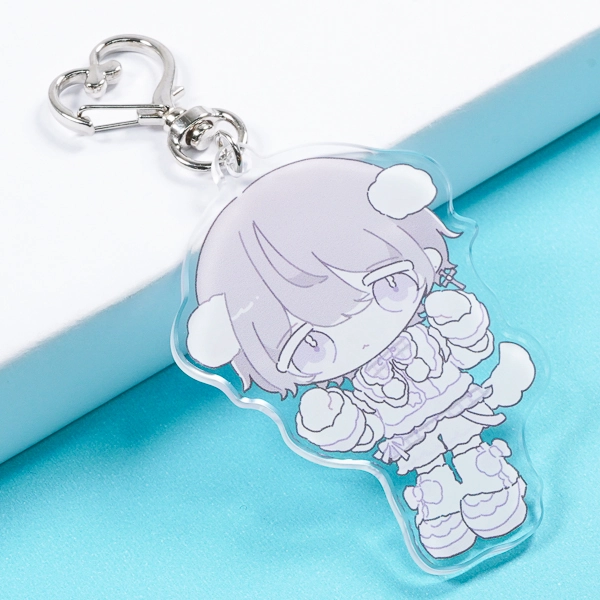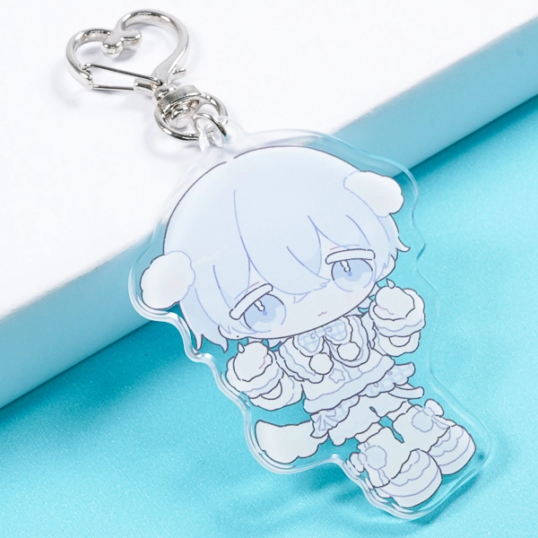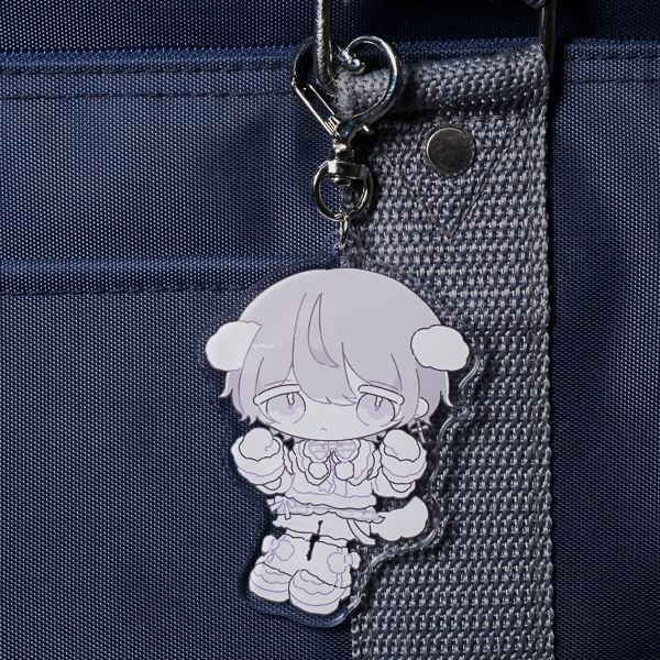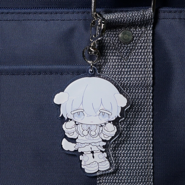 | 一言コメント | 白や淡いブルーを基調とした、ふんわりとした垂れ耳とフリルたっぷりの衣装が可愛らしい、男の子のちびキャラデザインです。全体を色素の薄いペールトーンでまとめた儚げな世界観に、キュートな「ハート型ナスカン」のパーツがぴったりとマッチしており、キャラクターの魅力をより一層引き立てるこだわりのグッズに仕上がっています。 |