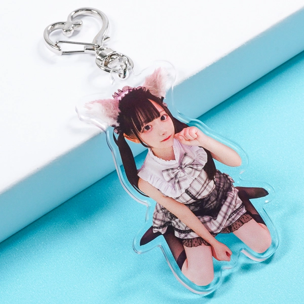 | 一言コメント | たくさんのリボンやフリルがあしらわれたピンク色の衣装に身を包んだ、女性の実写アクリルキーホルダーです。可愛らしいツインテールと、ちょこんと女の子座りをした愛らしいポーズに合わせてアクリルがダイカット(切り抜き)されており、写真素材ならではのリアルな存在感と衣装のディテールがダイレクトに伝わります。アイドルやコンカフェの定番アイテムである実写グッズとして、ファンの心をくすぐる魅力的なデザインです。 |