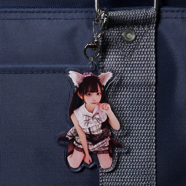 | 一言コメント | 猫耳としっぽをつけた可愛らしいコスプレ姿の女性を切り抜いた、実写デザインのアクリルキーホルダーです。衣装の質感や魅力的なポージングなど、写真素材ならではのリアルな存在感がダイレクトに伝わる仕上がりになっています。金具に採用されたハート型のナスカンがデザインのキュートさをさらに引き立てており、アイドルやコンカフェキャストの生誕祭・イベント向け「推し活グッズ」として非常に人気の高い仕様です。 |