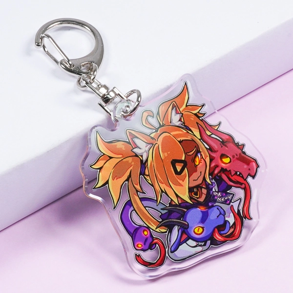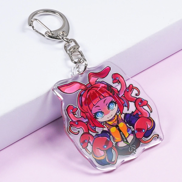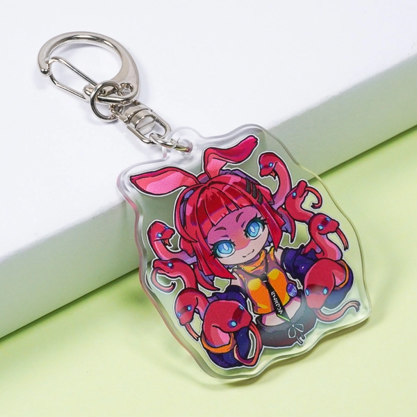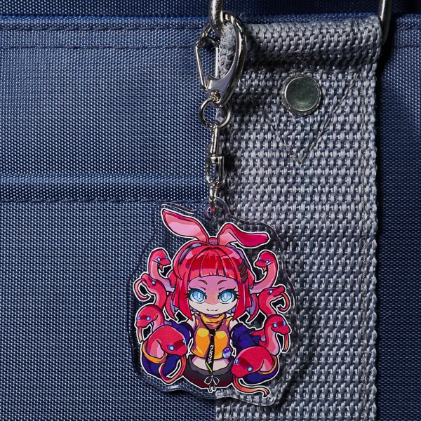 | 一言コメント | 赤い髪と周囲を取り巻くヘビのようなモチーフが印象的な、モンスター娘風のちびキャラデザインです。表面のビビッドでダークポップなイラストの魅力もさることながら、裏面を通常の白ではなく「黒のベタ塗り」にし、そこに「あやしいそしき」というテキストを配置している点がこのデザインの最大のポイントです。アクリルの両面をたっぷりと活かしてキャラクターのミステリアスな世界観や設定を表現した、遊び心あふれるこだわりのグッズに仕上がっています。 |