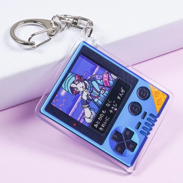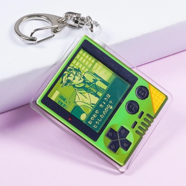 | 一言コメント | 昔懐かしい携帯型ゲーム機をモチーフにした、レトロで遊び心あふれるデザインのアクリルキーホルダーです。画面部分にはドット絵(ピクセルアート)で描かれたキャラクターやRPG風のセリフウィンドウが作り込まれており、ノスタルジックなゲームの世界観がギュッと詰まっています。長方形(スクエア型)のすっきりとしたフォルムはカバンに付けた際にも収まりが良く、サブカル系のアパレル雑貨や同人グッズとしても目を引く個性的な仕上がりです。 |