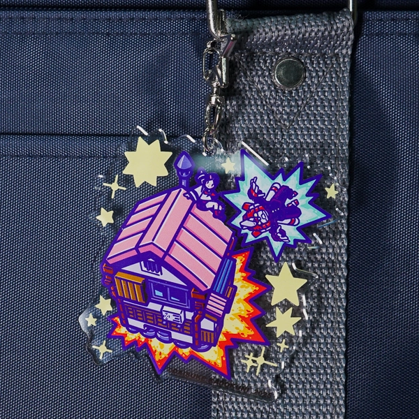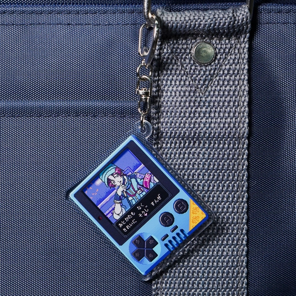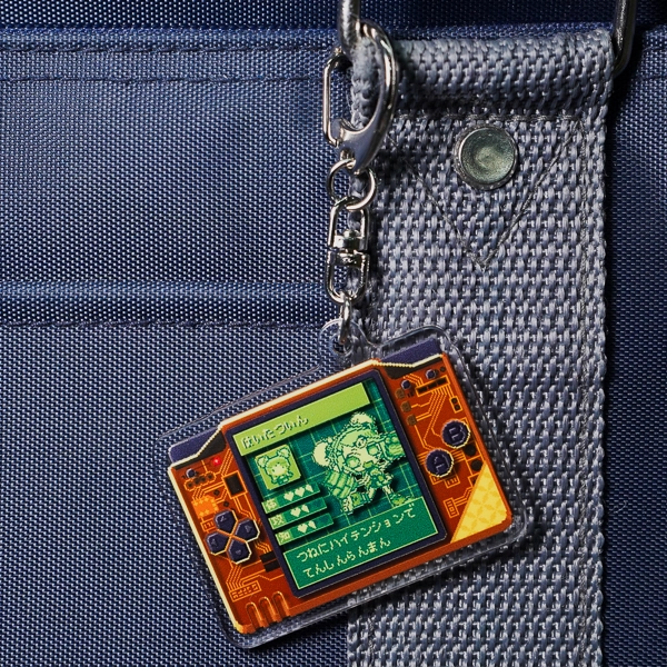 | 一言コメント | 横長の携帯型ゲーム機をモチーフにした、メカニカルなオレンジ色のデザインが特徴的なアクリルキーホルダーです。横長の画面を活かして、ドット絵のキャラクターだけでなく、ステータス画面やセリフウィンドウといったゲームUIが細かく描き込まれています。クリアカラーの本体から内部の電子基板が透けて見えるような、遊び心のあるサイバーポップな表現が目を引くこだわりのグッズです。 |