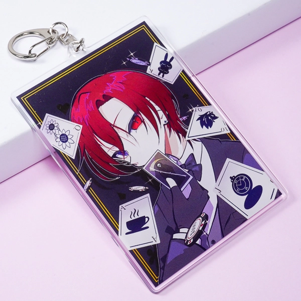 | 一言コメント | トランプやカジノチップが舞う、ミステリアスな雰囲気の男性キャラクターを描いたアクリルキーホルダーです。トレーディングカード(トレカ)やタロットカードを思わせる縦長の長方形(レクタングル)フォルムを採用しており、枠にとらわれない一枚の絵画のようにイラストの世界観をダイナミックに表現できます。同人イベントの頒布物やキャラクターグッズとして、クールでスタイリッシュな印象を与えたい場合に非常に人気の高いデザイン構成です。 |