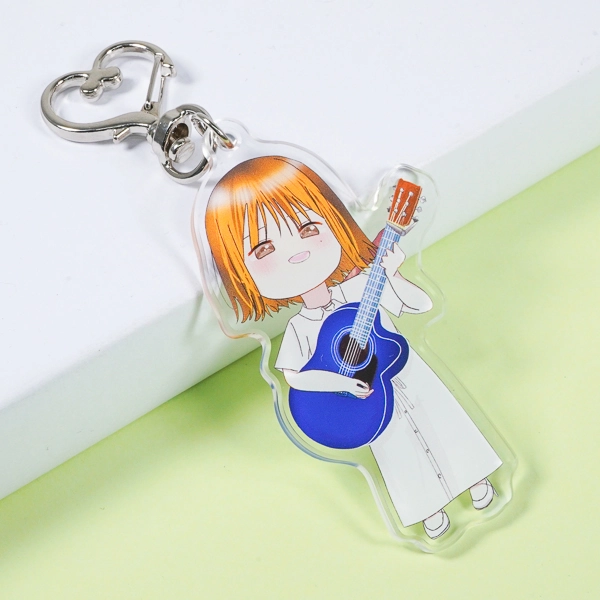 | 一言コメント | シンガーソングライター・Mayuna様のオリジナルアクリルキーホルダーです。白いワンピース姿で鮮やかな青いアコースティックギターを構える、優しく可愛らしいちびキャラ(デフォルメ)デザインに仕上がっています。キャラクターの愛らしい雰囲気に合わせて取り付け金具に「ハート型ナスカン」を採用しており、ライブやイベント会場でファンの心を掴む、こだわりのアーティストグッズとなっています。 |