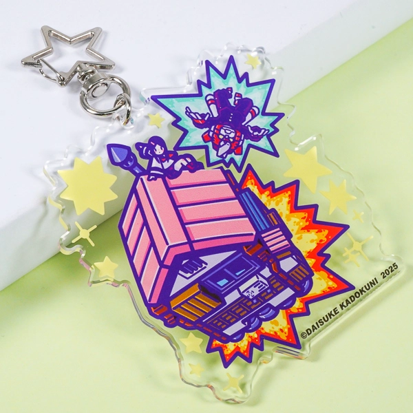 | 一言コメント | 爆発エフェクトやユニークなモチーフが散りばめられた、アメコミ風のポップでエネルギッシュなイラストのアクリルキーホルダーです。周囲に配置された星のモチーフは、あえてアクリルの透明部分を残して浮かせたようにレイアウトされており、奥行きを感じさせる遊び心のあるデザイン構成になっています。イラストのテイストにぴったりな「星型ナスカン」を組み合わせることで、クリエイターのオリジナルグッズや同人アイテムとして、よりキャッチーで目を引く仕上がりとなっています。 |