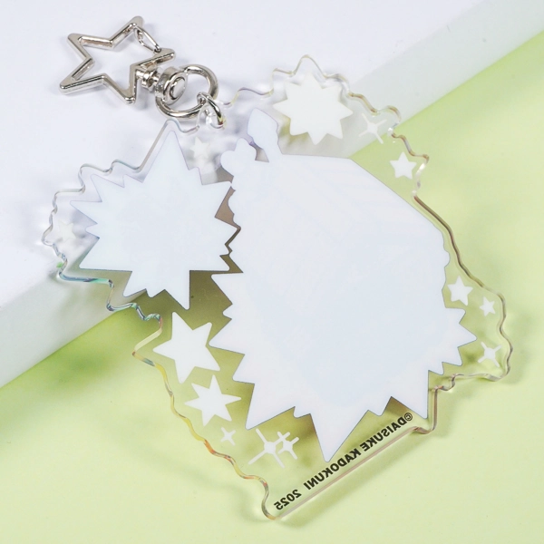 | 一言コメント | キャラクターと一緒に風景の撮影が楽しめる、人気の「チェキ風(クリアフレーム)」デザインのアクリルキーホルダーです。背景部分をあえて透明に抜くことで、お出かけ先の景色やカフェのスイーツなど、現実の風景とキャラクターを重ねて写真撮影を楽しむことができます。ビビッドなライムグリーンのフレームが、元気いっぱいなキャラクターの魅力を引き立てる、推し活にぴったりのトレンドアイテムです。 |