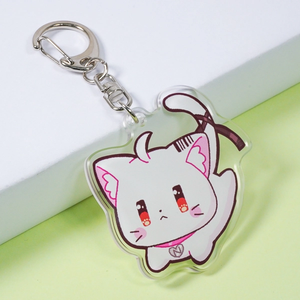 | 一言コメント | うるうるとした大きな瞳が愛らしい、白猫のキャラクターを描いたアクリルキーホルダーです。耳のピンク色や首元のハートのチャーム、そしてピンと立ったしっぽに結ばれたリボンが、キャラクターの可愛らしさをさらに引き立てています。キャラクターのシルエットに沿ってアクリルをカット(ダイカット)することで、イラストの魅力がダイレクトに伝わる、シンプルで使いやすいオリジナルグッズに仕上がっています |