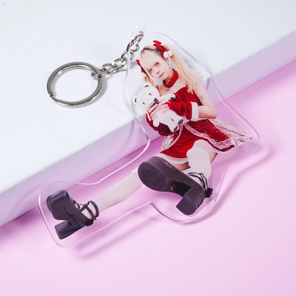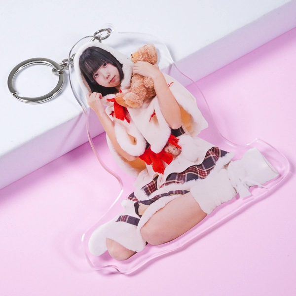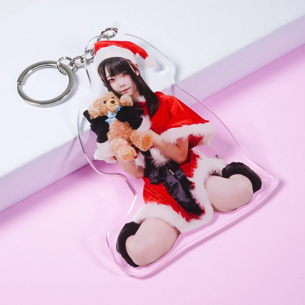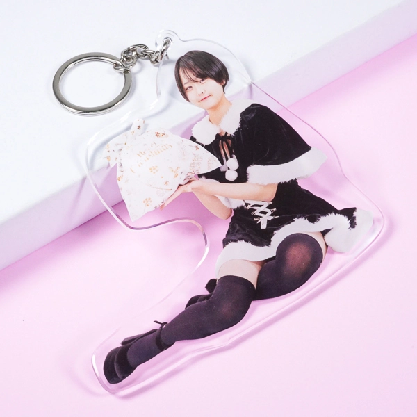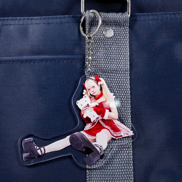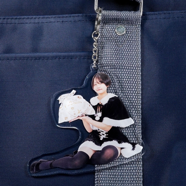 | 一言コメント | ツインテールが可愛らしい、赤いサンタクロース衣装を身に纏った女性の実写アクリルキーホルダーです。白いクマのぬいぐるみを抱きかかえ、足を前に伸ばして座る少しアンニュイなポージングに合わせてアクリルがダイカット(切り抜き)されています。チュールが重なった衣装のディテールや写真素材ならではのリアルな存在感が際立ち、クリスマスシーズンのイベント物販や特別な「推し活グッズ」としてファンに喜ばれるアイテムです。 |