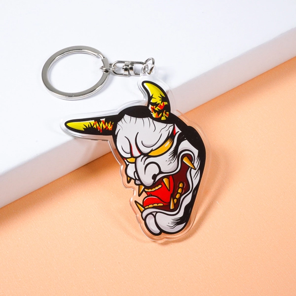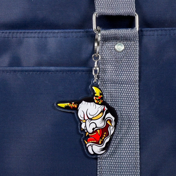 | 一言コメント | 日本の伝統的な「般若」のお面を、現代的なイラストタッチで表現したアクリルキーホルダーです。角に描かれた炎のような模様や、赤と黄色を効かせたカラーリングが、ダークで力強い独特の雰囲気を醸し出しています。複雑な輪郭をそのまま活かしたダイカット仕様により、モチーフの持つ迫力がさらに強調された仕上がりです。和テイストのオリジナルブランドグッズや、ストリートカルチャーを意識したファッションアイテムとして抜群の存在感を発揮します。 |