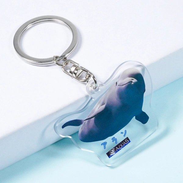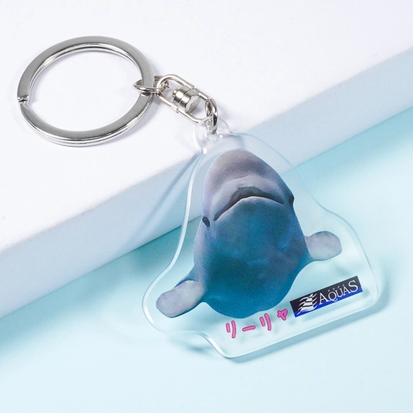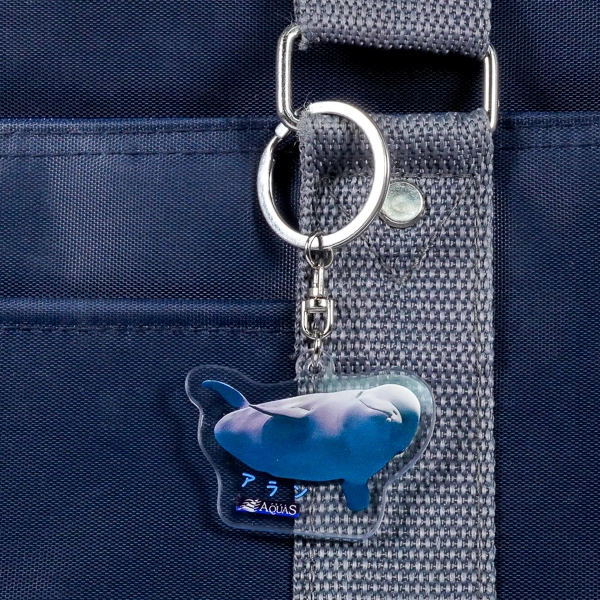 | 一言コメント | 水族館の人気者、シロイルカ(ベルーガ)の愛らしい姿をそのままプリントした実写アクリルキーホルダーです。優雅に泳ぐシロイルカのシルエットに合わせてアクリルがダイカット(切り抜き)されており、海の中を思わせるブルーの背景が涼しげな印象を与えます。表面には「アラン」という名前と水族館のロゴが入り、裏面には名前を書き込めるスペースが設けられているなど、水族館のオリジナルお土産グッズとして、思い出に残る工夫が凝らされた実用的なデザインです。 |