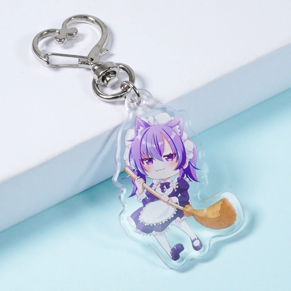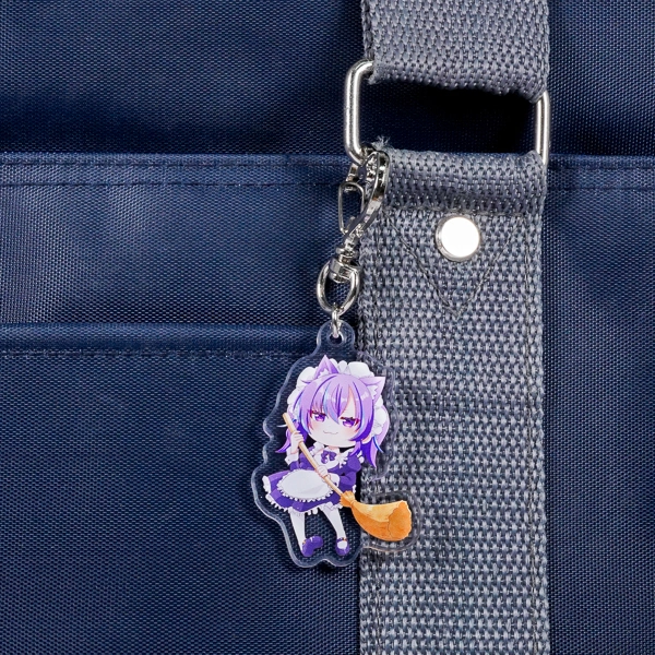 | 一言コメント | 紫色の髪に猫耳、そしてフリルたっぷりのメイド服姿が愛らしい、ちびキャラのアクリルキーホルダーです。ほうきを手にした少し得意げな表情が魅力的で、キャラクターのシルエットに合わせてアクリルがダイカット(切り抜き)されています。イラストのキュートな雰囲気に合わせて取り付け金具にハート型のナスカンを採用しており、同人グッズやキャラクターグッズとして、細部まで可愛らしさにこだわったデザインに仕上がっています。 |