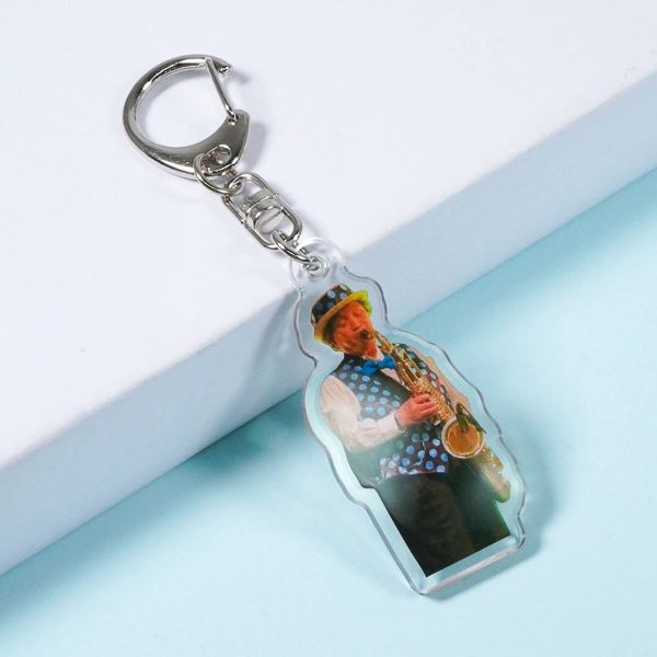 | 一言コメント | サックスを演奏するミュージシャン(パフォーマー)の実写アクリルキーホルダーです。ドット柄のベストや蝶ネクタイといったポップな衣装から、手に持つサックスのディテールまで、写真素材ならではのリアルな魅力がたっぷりと詰まっています。演奏中の熱気ある姿に合わせてアクリルがダイカット(切り抜き)されており、ライブイベントの記念グッズやアーティストのファンアイテムとして、特別感のある仕上がりになっています。 |