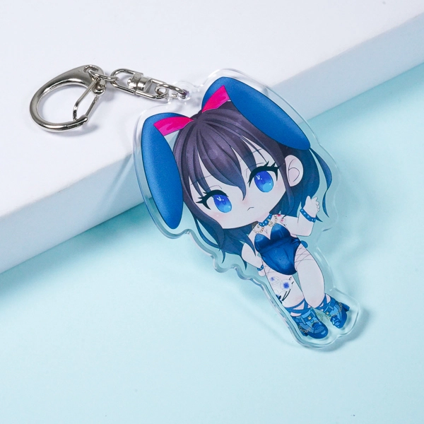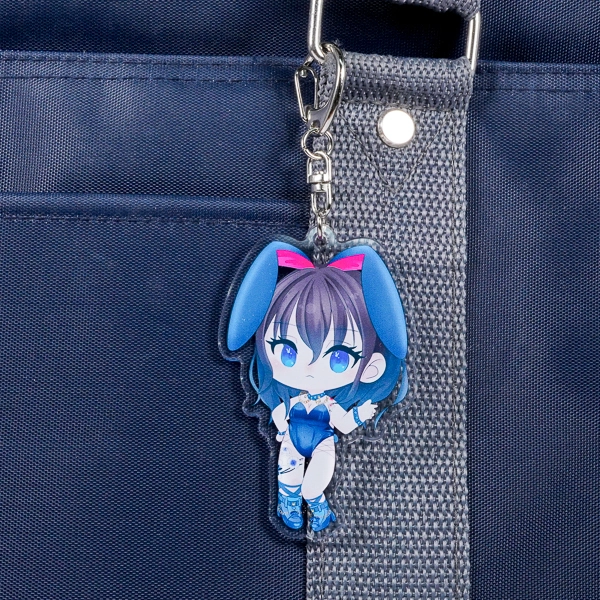 | 一言コメント | ブルーを基調とした、クールで小悪魔的な雰囲気のバニーガール風ちびキャラを描いたアクリルキーホルダーです。大きな垂れ耳やセクシーな衣装のディテールが可愛らしく、少しツンとした表情も魅力的です。キャラクターの動きのあるシルエットに合わせてアクリルがダイカット(切り抜き)されており、同人グッズやオリジナルキャラクターのアイテムとして、カバンにつけても存在感を放つデザインに仕上がっています。 |