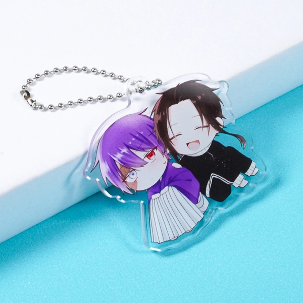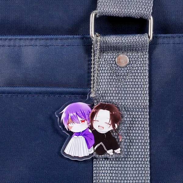 | 一言コメント | クールな表情のキャラクターと満面の笑みを浮かべるキャラクター、2人のちびキャラが仲良く寄り添うアクリルキーホルダーです。対照的な2人のシルエットに合わせてアクリルがダイカット(切り抜き)されており、キャラクター同士の関係性やストーリーが伝わってくるような魅力的なデザインに仕上がっています。取り付け金具には定番のボールチェーンを採用しており、同人イベントでの頒布グッズや「推しカプ」の推し活アイテムとして、ファンに喜ばれる構成です。 |