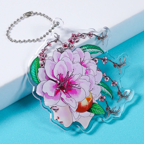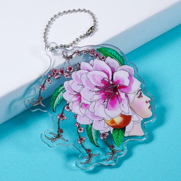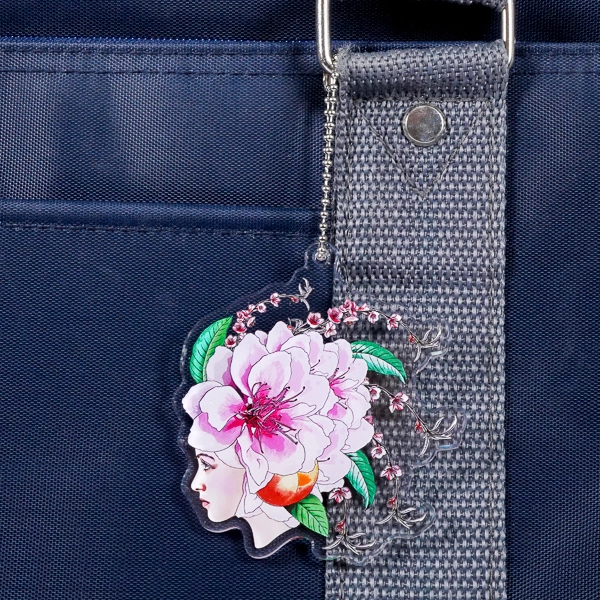| 一言コメント | 伏し目がちな女性の美しい横顔と、大輪の牡丹を思わせる華やかな花々が描かれた、芸術的なアクリルキーホルダーです。花びらの繊細なピンク色や葉の鮮やかな緑が美しく発色しており、アート作品のような気品を感じさせます。枝垂れる花の枝の周囲はあえて透明(透かし)にすることで、繊細な線画が際立ち、アクリルならではの抜け感のあるデザインに仕上がっています。クリエイターのオリジナルグッズやミュージアムショップのアイテムとして、非常に目を引く優美な一品です。 |