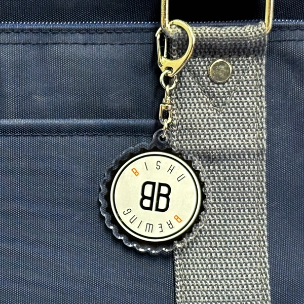 | 一言コメント | 円の形状をうまく活かしたデザインとなっています。5周年記念グッズとして製作いただきました。 |