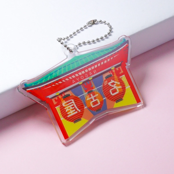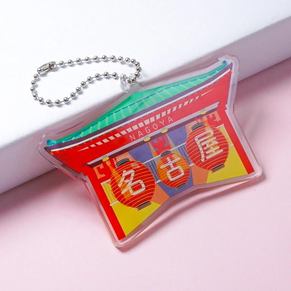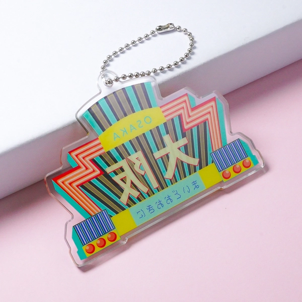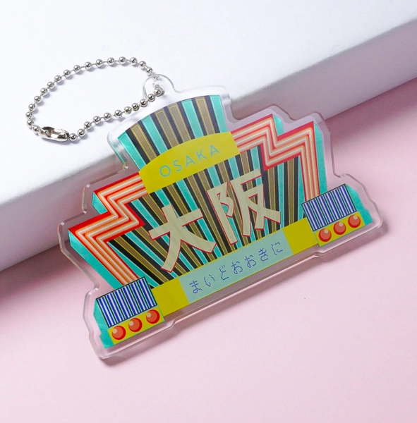 | 一言コメント | 色鮮やかなデザインの中に「名古屋」の文字が映えています。このように、地名を入れたアクキーを作るのも楽しいですね。 |