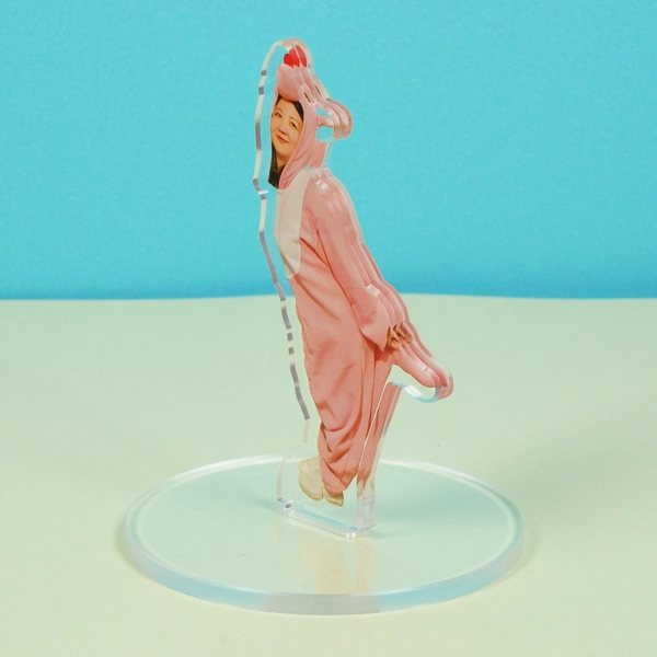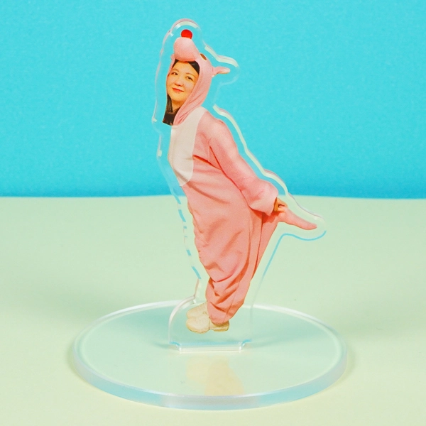| 一言コメント | ピンク色のキュートな着ぐるみ姿の女性をプリントした、ユニークな実写アクリルスタンドです。少しおどけたような動きのあるポージングに合わせてアクリルがダイカット(切り抜き)されており、写真素材ならではのリアルな存在感と、衣装の鮮やかな発色が目を引きます。シンプルな透明の丸型台座を組み合わせることで、人物がそこに立っているかのような立体感が際立ちます。イベントの記念グッズや、タレント・配信者様の個性が光る「推し活グッズ」として、飾って楽しいデザインに仕上がっています。 カテゴリタグ |