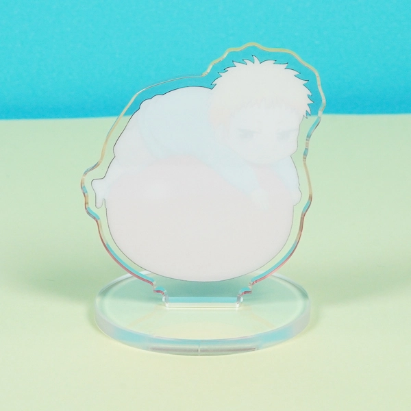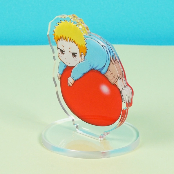 | 一言コメント | 大きな赤いボールにだらんと寄りかかる、気怠げな表情が可愛らしい男の子のちびキャラを描いたアクリルスタンドです。少し不機嫌そうなジト目や、リラックスした無防備なポージングに合わせてアクリルがダイカット(切り抜き)されており、キャラクターの個性が愛らしく表現されています。シンプルな透明の丸型台座を組み合わせることで、キャラクターがそこでくつろいでいるかのような立体感が生まれ、デスク周りや棚にちょこんと飾って楽しめる癒やしのオリジナルグッズに仕上がっています。 |