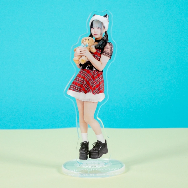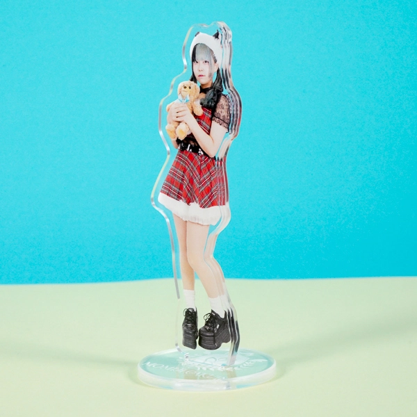 | 一言コメント | テディベアを抱きしめたポーズと、赤いタータンチェックの衣装が可愛らしい実写人物のアクリルスタンドです。ツートンカラーの髪色やアニマル耳の帽子、黒の厚底靴など、サブカルチャーや地雷系ファッションの要素が詰まった、個性的で目を引く魅力的なデザインです。 |
