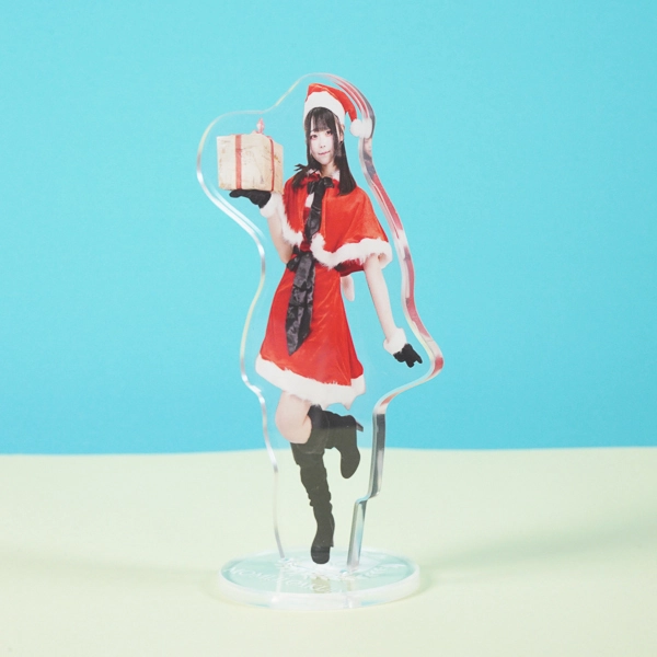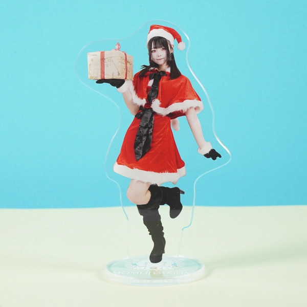 | 一言コメント | プレゼントボックスを片手に、サンタクロースの衣装に身を包んだ実写人物のアクリルスタンドです。片足を上げた軽やかで動きのあるポージングと、王道の赤いミニ丈ワンピースやサンタ帽の組み合わせが、クリスマスらしい華やかで可愛らしい雰囲気を引き立てるデザインになっています。 |