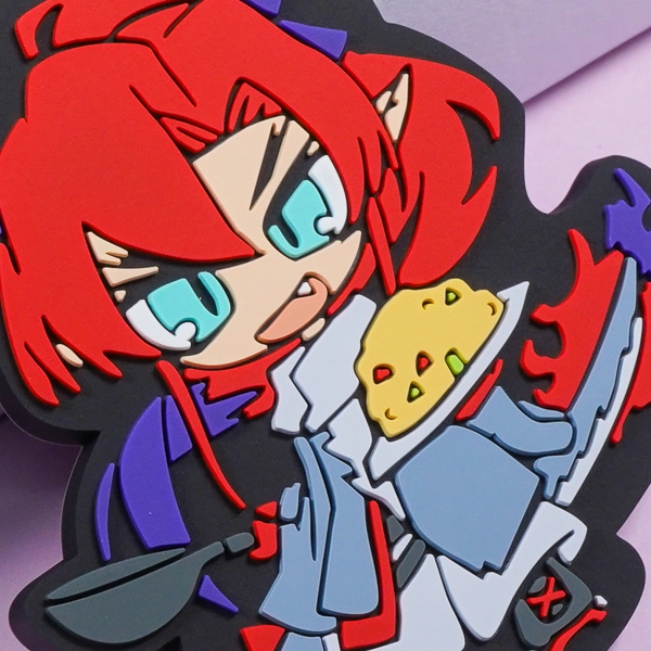 | 一言コメント | 髪の毛のシャープな束感や、特徴的なハイライトの入った瞳、手に持った料理の具材の粒まで、2D加工の凹凸によって立体的かつ色鮮やかに再現しています。 |