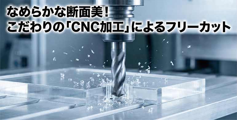 「たかが素材」と思わず、ぜひ実物を手に取って確認してみてください。CNC加工で仕上げられた側面の輝きと、曇りのない透明感。それは、あなたのデザインを最高に美しく見せるための、選び抜かれたステージなのです。