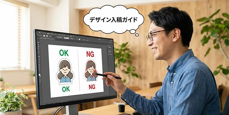 特にハードルが高いとされる「カットラインの作成」。もしご自身で作るのが難しい場合は、弊社の熟練スタッフにお任せください。お送りいただいた画像の輪郭に沿って、最適なカットラインを作成・調整するサポートを行っています。「キャラクターの形に沿って切り抜きたい」「丸型でシンプルに仕上げたい」といったご要望をお伝えいただければ、イメージ通りの形に仕上げます。