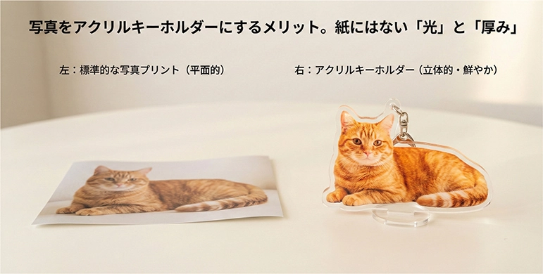 1.写真をアクリルキーホルダーにするメリット。紙にはない「光」と「厚み」
