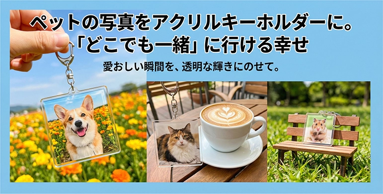 今回ご紹介したように、写真を美しいアクリルキーホルダーにするには、アクリルの透明度や印刷の細かさが重要になります。特にペットの毛並みや人物の表情をリアルに残したい場合は、写真データへの理解が深い専門の製作会社を選ぶことが、後悔しないための第一歩です。