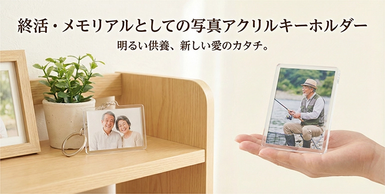 少し真面目な話になりますが、近年、アクリルキーホルダーの用途として注目されているのが「終活」や「メモリアル」の分野です。