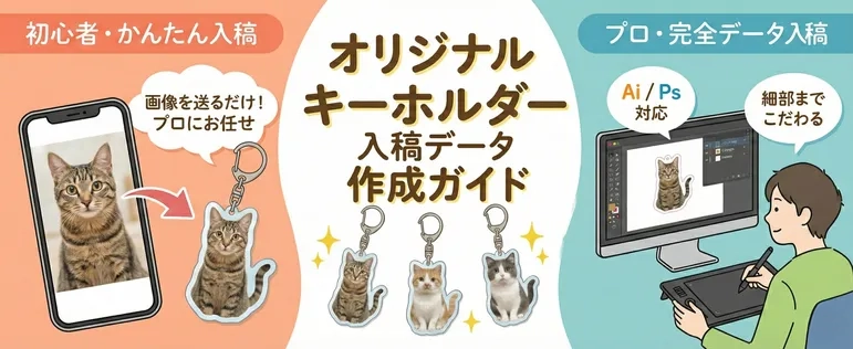 このページでは、当店アクリルキーホルダーの2つの高品質ポイント をご紹介。さらに、初心者さん向け・上級者さん向けの入稿データ作成ガイドもご用意しております。