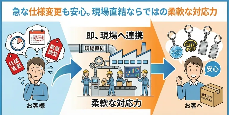イベント直前の仕様変更や、急な数量の調整など、グッズ製作には予期せぬ変更がつきものです。