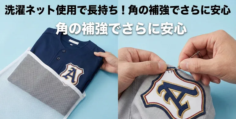 ・裏返して洗う: ワッペンが洗濯槽や他の衣類と擦れるのを防ぎます。