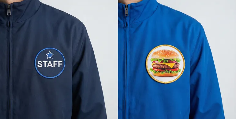 人間の脳は、文字情報よりも画像情報の処理速度の方が圧倒的に速いと言われています。特に写真は、対象物の質感、色味、空気感までを一瞬で伝達します。 例えば、飲食店のユニフォームに「美味しいハンバーグ」という文字を入れるのと、シズル感たっぷりの「ハンバーグの写真」が入ったワッペンを付けるのとでは、お客様の食欲に対する訴求力は雲泥の差です。写真入りワッペンは、着用して歩くだけで強力な広告塔となり、見る人の直感に働きかける最速のプレゼンテーションツールとなります。