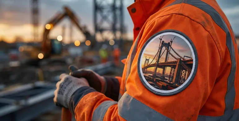 大規模なプロジェクトや、地域のランドマークとなる建造物の施工に携わった際、その完成予想図や竣工写真をワッペンにして、プロジェクトチーム全員で着用するケースがあります。 これは単なる記念品ではなく、自分たちが成し遂げた仕事への「誇り」を可視化する勲章のような役割を果たします。ヘルメットや作業着の袖に、美しい建造物の写真が入ったワッペンがあることで、チームの一体感が生まれ、次なる仕事へのモチベーション向上につながります。また、施主や地域住民に対しても、「この建物を作ったプロフェッショナル集団である」という無言のアピールになります。