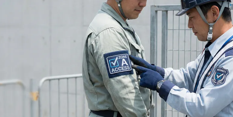物理的な鍵やカードキーと同じように、ワッペンを「通行証」や「許可証」として使うケースも増えています。特に安全管理が大切な工場や、人の出入りが激しいイベント会場では、マジックテープ式のワッペンが「見やすいIDカード」として活躍します。