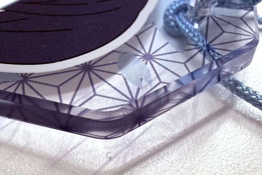 印刷を守る「フィルム加工」: ホットモバイリーのお守りアクキーは、印刷面を透明フィルムで完全に覆っています。毎日握りしめても、カバンの中で鍵と当たっても、大切なイラストや文字は決して剥がれません。「願いが色褪せない」という安心感です。