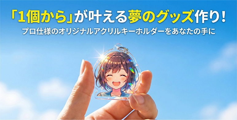 印刷が剥がれない。しかもずっと綺麗当店のアクキーは、印刷面の全面をPETフィルムで保護します。印刷部分だけを保護するのではなく、面全体を透明シートで保護しますので、自然な製品の仕上がりとなります。