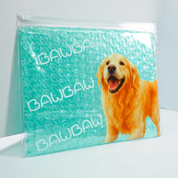 お客様のオリジナルデザインを印刷したプチプチしたデザインのクッションポーチ をご製作!クッション付きのPVC製ポーチに希望のデザインをフルカラー印刷できるのは当店のみ!オリジナルグッズ製作や自社ブランディングにぜひご利用ください。