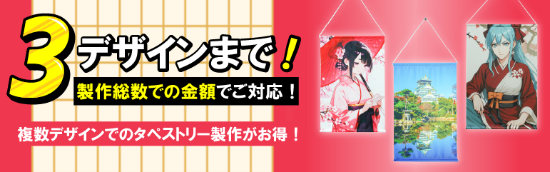 当店では、お客様がお得にタペストリーを製作できる3つのお得サービスをご用意しております!